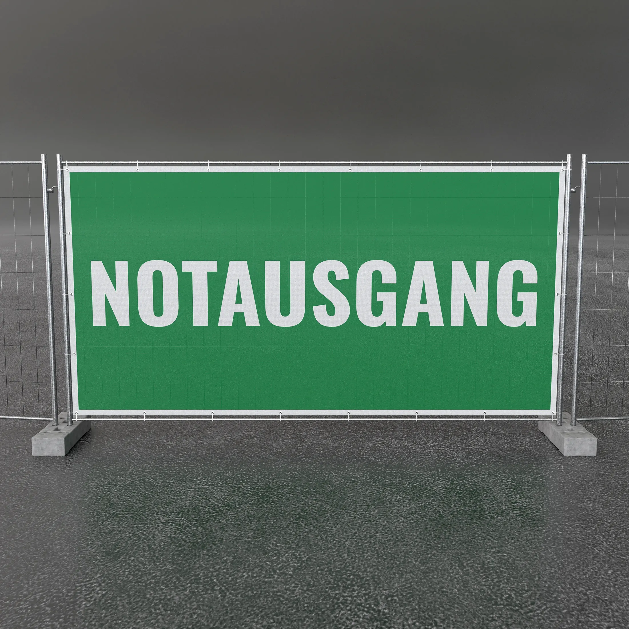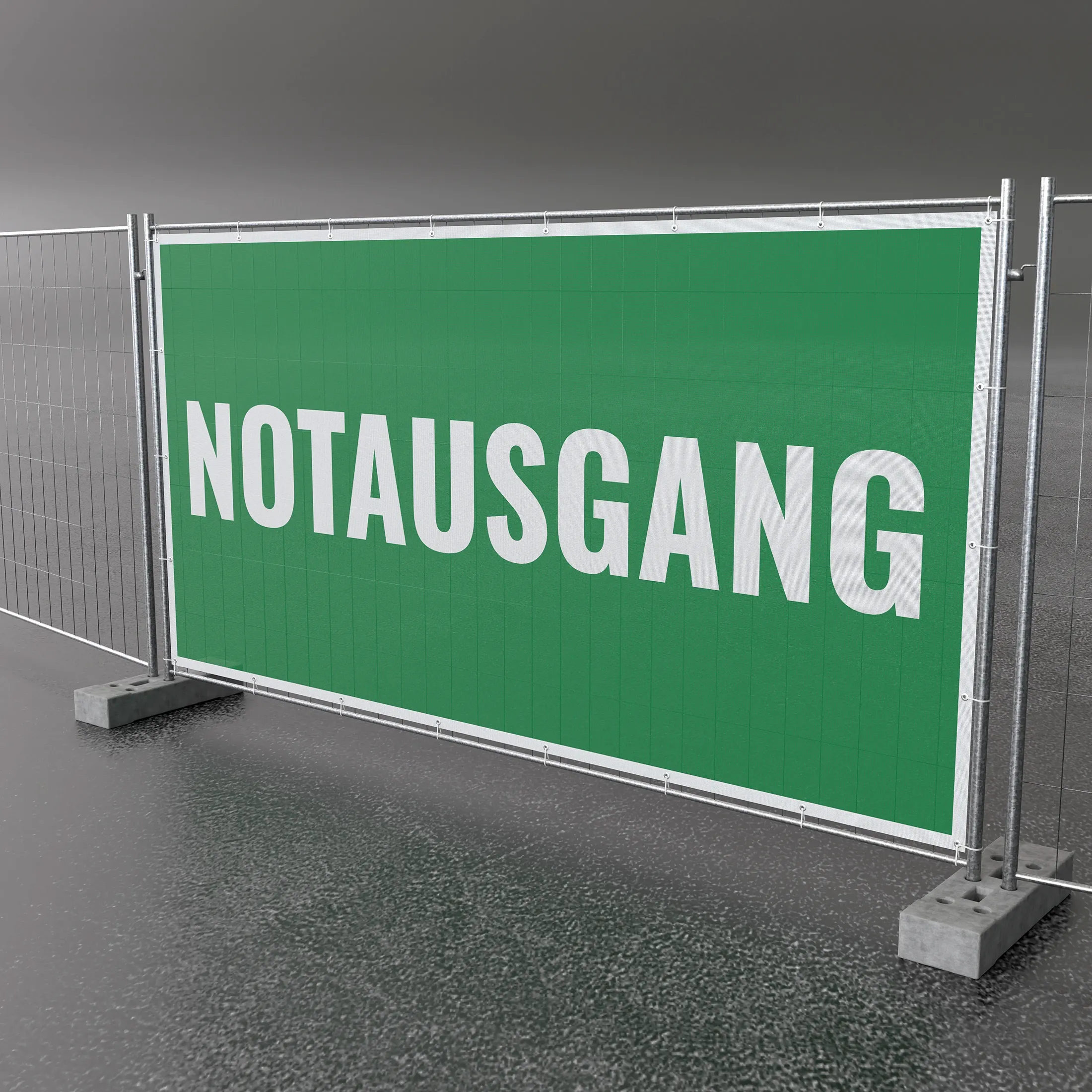 Du Möchtest den Notausgang auf einem Umzäunten Gelände markieren? Unser Bauzaunbanner macht es dir einfach.